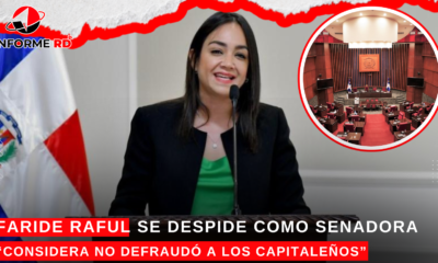 Santo Domingo, R.D.- Faride Raful se ha despedido oficialmente de su cargo como senadora, afirmando con confianza que no ha defraudado a los capitaleños durante su...